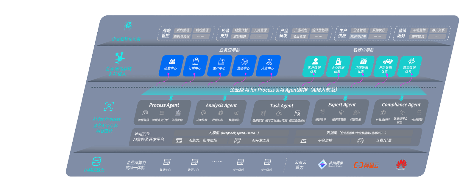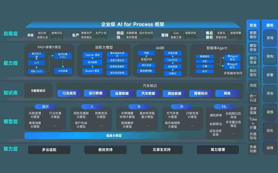 端到端的一站式AI工作空间深度融合了从企业战略规划到日常经营的全流程业务板块,,,定向解决车企内部领域多、、、部门多、、链条长、、、场景碎片化等难题,,支持车企快速构建以AI为核心的生产力写作体系,,,,实现任务执行与AI能力的无缝集成与交互